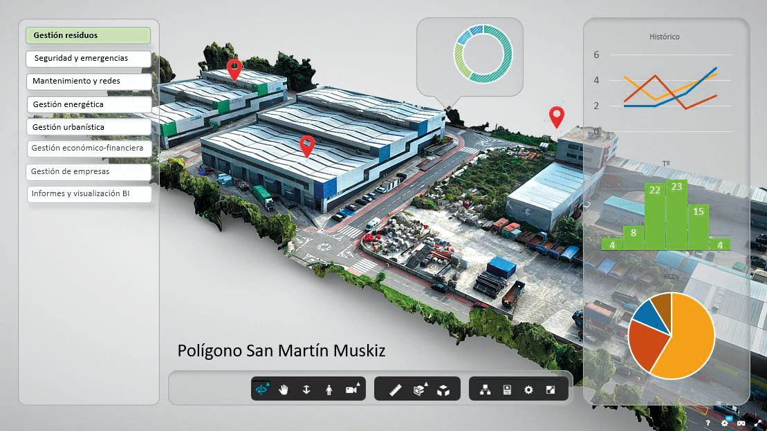 Desarrolla gemelos digitales de polígonos industriales que integran información energética, operativa y de infraestructuras para facilitar su gestión